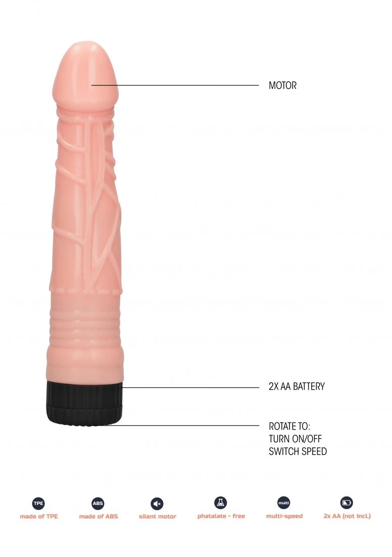 8″ Ribbed Realistic Dildo Vibe – Flesh