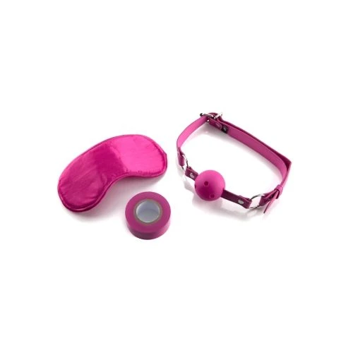 Start on the path of BDSM with this fun bondage set! Ideally equipped for beginners and the more advanced, it consists of an open ball-gag, fabric eye mask and a large roll of bondage tape.
