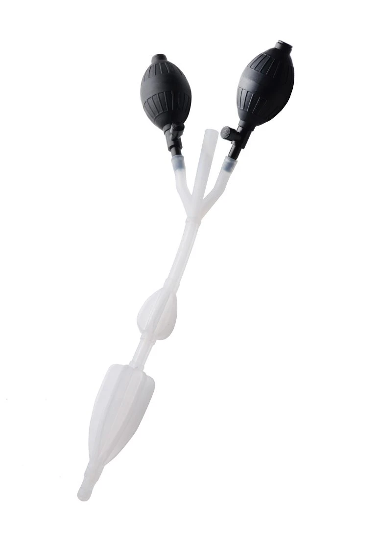 Make enema play more enjoyable with the CleanStream Silicone Double Bulb Nozzle. Each bulb is controlled by its own pump, allowing you to vary the size of each as desired. Simply insert the first bulb into your anus and leave the second one out. Doing this will create a seal, ensuring that any fluid inserted (up to 3500ml) will remain inside until you wish to let it out. Get cleansed and a good fill with this great new enema piece!