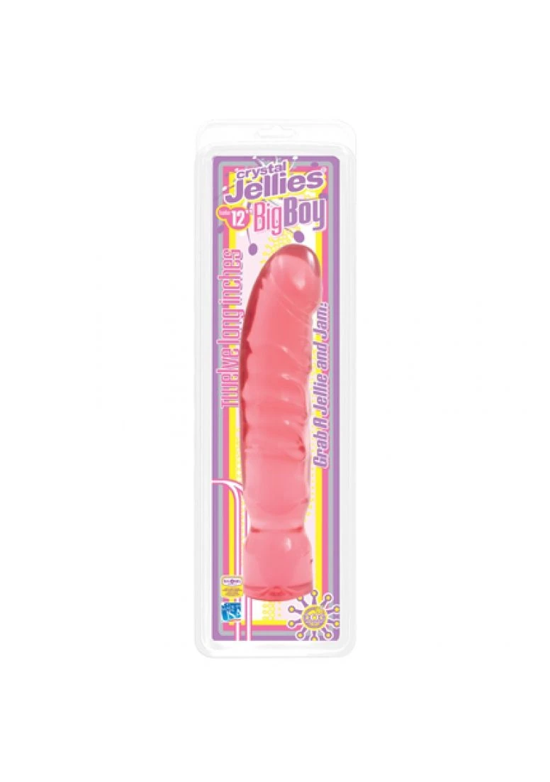 Doc Johnson’s Crystal Jellies Big Boy is a super-size 12″ dong in a league of its own. The girth alone will completely fill an ass or pussy! Available in Pink, Clear and Purple. Made from non-phthalate body-safe material, which includes Doc’s antibacterial Sil-A-Gel formula. Proudly made in America.