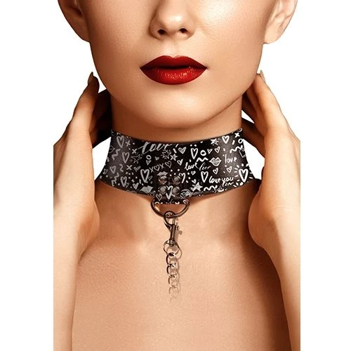 This comfortable yet sturdy graffitit printed collar, with an attached leash, will put you in total control! The ouch collar is made of high quality bonded leather. It features a Velcro lock what means it will fit almost anyone and a snap-closure system to assure it’s interchangeable with other bondage toys!