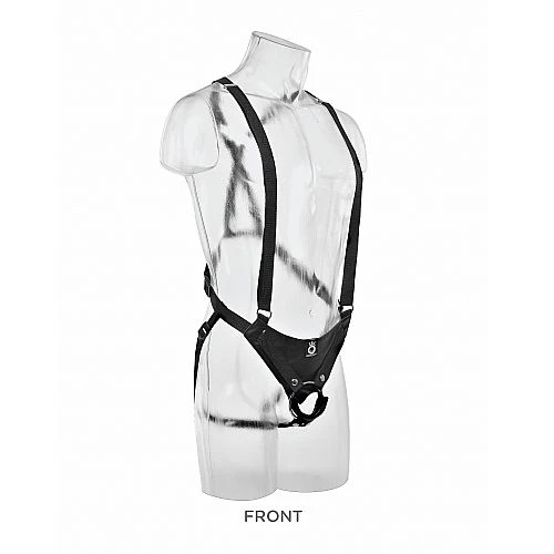 When size matters and you’re looking for a one-of-a-kind hollow-strap-on experience, this King Cock Two Cocks One Hole Hollow Strap-On Suspender System satisfies your double dick dreams with one thick dildo sculpted from two lifelike cocks. Exquisitely handcrafted, the King Cock Two Cocks One Hole Hollow Strap-On Suspender System provides exciting stimulation and a satisfying feeling of fullness. This unique strap-on system features two heavy-duty nylon shoulder straps that easily adjust to support the weight of the husky hollow dildo, along with an adjustable nylon waist strap to fit most sizes. A durable metal O-ring holds the dong in place when the action heats up, while nylon webbing thigh straps easily adjust to hold everything together. A Velcro strap wraps around the shaft of the dildo for extra support, and four straps help secure the metal O-ring around the base of the dildo.