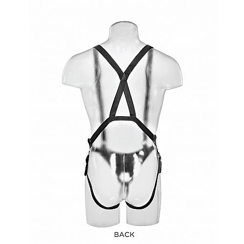 When size matters and you’re looking for a one-of-a-kind hollow-strap-on experience, this King Cock Two Cocks One Hole Hollow Strap-On Suspender System satisfies your double dick dreams with one thick dildo sculpted from two lifelike cocks. Exquisitely handcrafted, the King Cock Two Cocks One Hole Hollow Strap-On Suspender System provides exciting stimulation and a satisfying feeling of fullness. This unique strap-on system features two heavy-duty nylon shoulder straps that easily adjust to support the weight of the husky hollow dildo, along with an adjustable nylon waist strap to fit most sizes. A durable metal O-ring holds the dong in place when the action heats up, while nylon webbing thigh straps easily adjust to hold everything together. A Velcro strap wraps around the shaft of the dildo for extra support, and four straps help secure the metal O-ring around the base of the dildo.