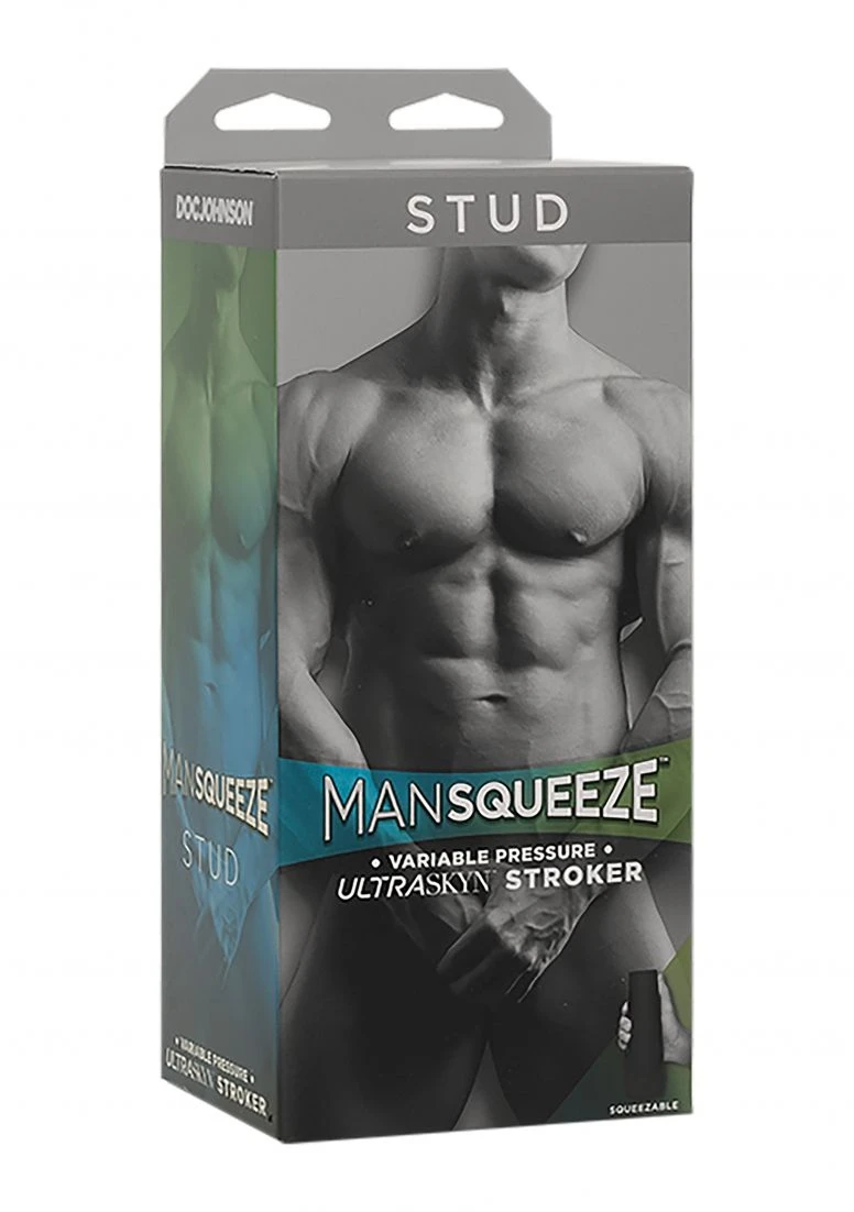 Get your man. Doc Johnson’s Main Squeeze line of hard case masturbators now offers Man Squeeze, a collection created especially for men who love men. Crafted with a suction-adjusting end cap and squeezable grip that lets you vary the tightness of each stroke, Stud features a lifelike ass opening that looks feels just like the real thing. Just like its Main Squeeze counterparts, Stud is crafted with a unique internal texture that feels like thrusting into the well-muscled hunk of your dreams. The double-cap hardshell design doubles as a discreet travel and storage case, keeping your Man Squeeze fresh and ready for whenever the mood strikes.