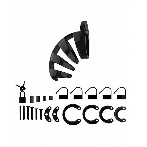 The Man|Cage Chastity Cages are manufactured from high-grade polycarbonate, a very light, durable and hypoallergenic material. The cage consists of three parts which fit perfectly together. The two guidance pins connect the top parts and the oval taper pin connects the rings with the cage. A variety of rings in different sizes and distance pieces will allow you to create the perfect size! The rings have a comfortable fit and are absolutely safe. A metal lock or tie-wrap lock can easily close the cage. The included tie-wrap locks ensure that they will not trigger the alarm of metal detectors at parties, festivals or even airports! As hygiene is very important while wearing a cage, the superior Man|Cage series are equipped with a variety of vents and a urination opening. The cage makes it impossible to get an erection but it will be, after liberation, super intense, just like the freeing orgasm to follow! The Man|Cage Chastity Cage gives the key-holder optimal power over sexual gratification!