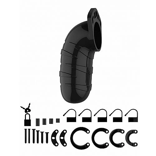 The Man|Cage Chastity Cages are manufactured from high-grade polycarbonate, a very light, durable and hypoallergenic material. The cage consists of three parts which fit perfectly together. The two guidance pins connect the top parts and the oval taper pin connects the rings with the cage. A variety of rings in different sizes and distance pieces will allow you to create the perfect size! The rings have a comfortable fit and are absolutely safe. A metal lock or tie-wrap lock can easily close the cage. The included tie-wrap locks ensure that they will not trigger the alarm of metal detectors at parties, festivals or even airports! As hygiene is very important while wearing a cage, the superior Man|Cage series are equipped with a variety of vents and a urination opening. The cage makes it impossible to get an erection but it will be, after liberation, super intense, just like the freeing orgasm to follow! The Man|Cage Chastity Cage gives the key-holder optimal power over sexual gratification!