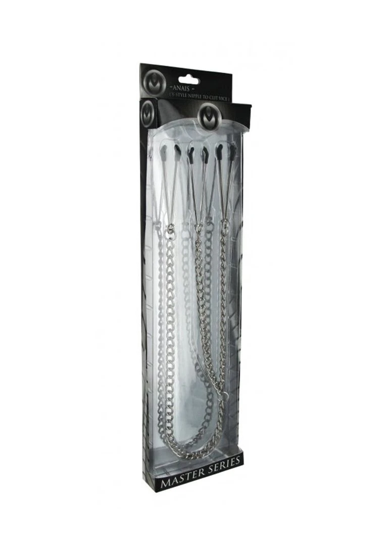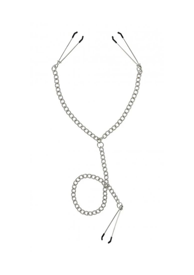 Connect her most sensitive areas together. These clamps have vinyl-coated ends, linked chain, and a sliding ring to adjust the tightness anywhere from just enough to hold them on all the way up to a really severe tit torturing pinch. They stay on, they are easy to use, they look good, and they can be heavy or light or anywhere in between.