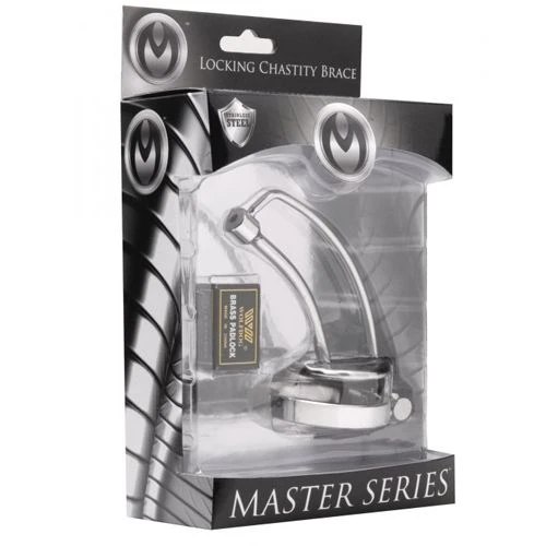 He will be compliant and under your control while wearing this stainless steel chastity brace. Featuring a curved spine with a cum-thru plug for extended wear. Simply place him in the cage, and fasten the base ring behind the testicles, then secure him with the enclosed lock and key set. You decide when he is free. Stainless steel is non-porous, hygienic, easy to sterilize, temperature resistant, impact resistant, and offers long-term value. It is also ideal for long-term wear.
