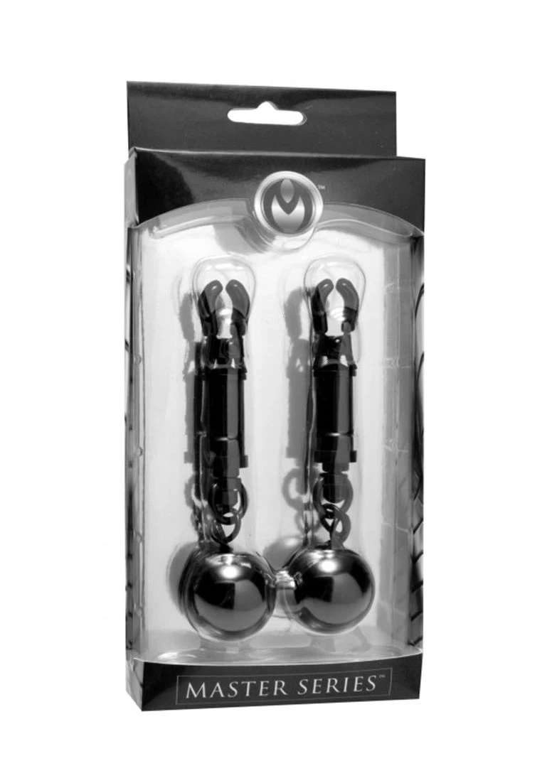Master Series Black Bomber Nipple Clamps With Ball Weights