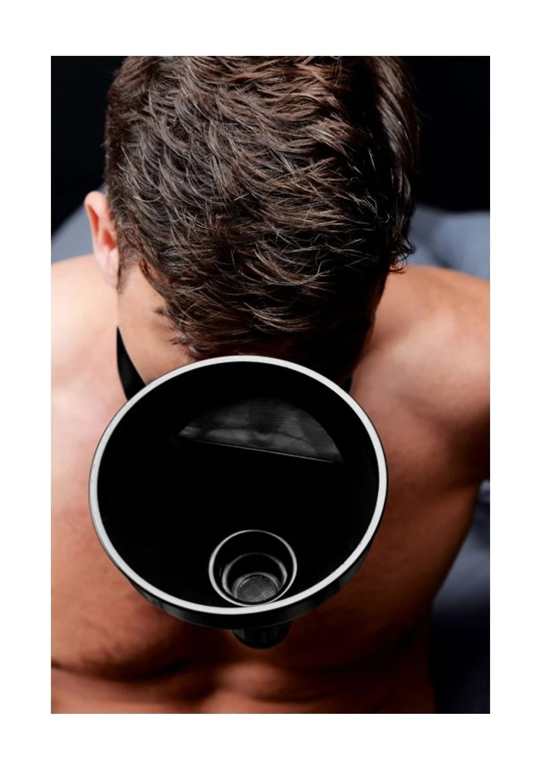 The name says it all! Pour the liquid of your choice down your slaves throat, forcing them to swallow every drop! This innovative and unusual gag adjusts around your submissive lovers head, tightening and even locking so that they cannot escape your twisted desires. The flexible funnel is held upright by a strap that snaps in place, but can be removed so you have more control. The funnel that emerges from the gag allows you to fill your plaything up with whatever you want! Take things up a notch with this sick and sadistic device!Â