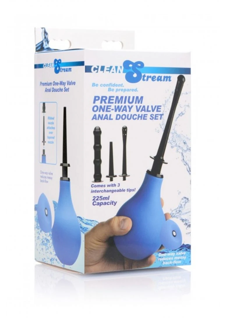Take your pick between three nozzles with this versatile enema set! This all-in-one anal douche kit gives you options for rinsing out in order to provide you with comfort, convenience, and cleanliness! A one-way valve reduces messy backflow to ensure that you have a pleasant experience. The soft, Easy Grip Bulb holds up to 225 ML of liquid, a perfect amount whether you are cleaning out for health or pleasure! The small tip is smooth, narrow, and tapered for easy insertion. The medium tip is longer, with sideways pointing holes for a deep, thorough cleanse. The largest tip is textured with four bulbs to provide sensation as it slips past your sphincter. All three clean easily with mild soap and water and are compatible with all types of lubricant.