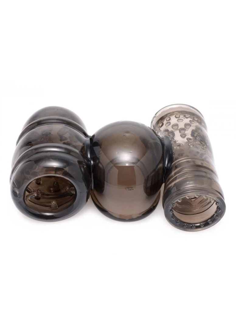 How long can you withstand this accessory that turns a massage wand into two tantalizing male sex toys? Perfect for orgasm denial or forced orgasm on your own or with a partner, this attachment slips easily over the head of a standard sized wand vibrator, providing two textured strokers that will thrum with the same incredible power as your massager. One stroker features a closed cup to target the head of the penis for pleasure, lined with soft tendrils to tickle and tease. The other stroker is open-ended to pleasure the entire shaft, lined with stimulating nubs for an unbearably intense massage with every thrust. Endure extreme vibrating ecstasy for as long as you can before exploding! Made of phthalate-free TPE, this pleasure tool can be used with both silicone and water-based lubricants.