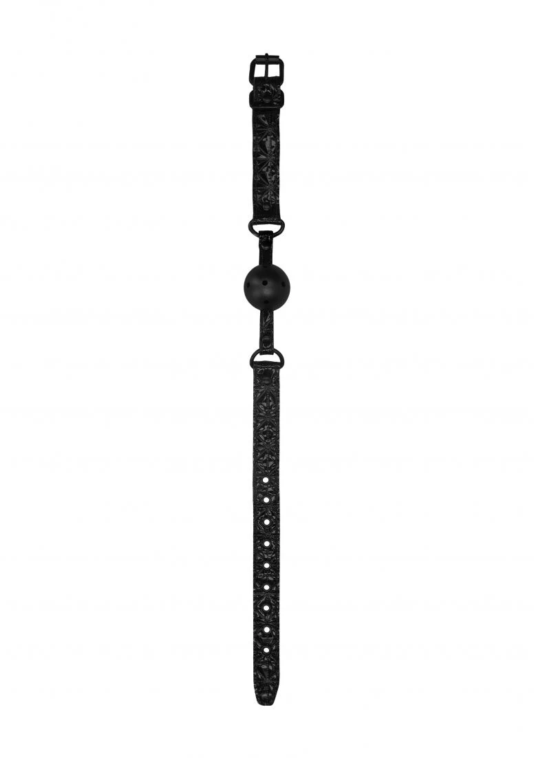 Silence your partner with this OUCH! Ball Gag, which is perfect for beginners and experienced bondage players alike. This tough phthalate-free ball gag comes with metal O-rings and has an adjustable buckle featuring 9 holes for easy adjustment. It measures 62 cm (24.4″) in length and 2.5 cm (1.74″) in width. The ball has a diameter of 4.4 cm (1.74″). Made from neoprene and faux-Leather, with an exquisite diamond pattern.