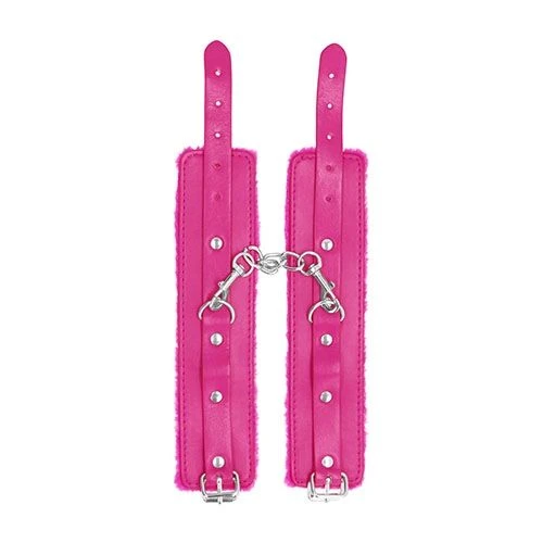 The OUCH! Plush wrist cuffs have been designed with comfort in mind while being tied up in your play! The cuffs have a furry lining, an adjustable strap with a sturdy clasp for a perfect fit and an attached ring for easy hook-ups!