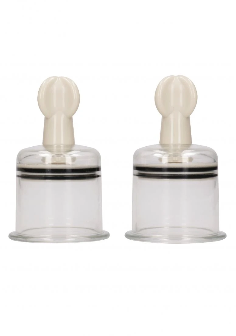 Combine the pleasure and arousal these nipple enhancers give whilst massage cupping your breasts! Be amazed at how amazingly simple and effective these suction cups work! Simply place the suction cups over the desired area and twist the handle manually to attach the cups. The OUCH! SUCTION CUP NIPPLE ENHANCERS are made of solid high-grade plastic, are executed in a white/transparent colour and come as a pair in a choice of sizes: S, M and L!