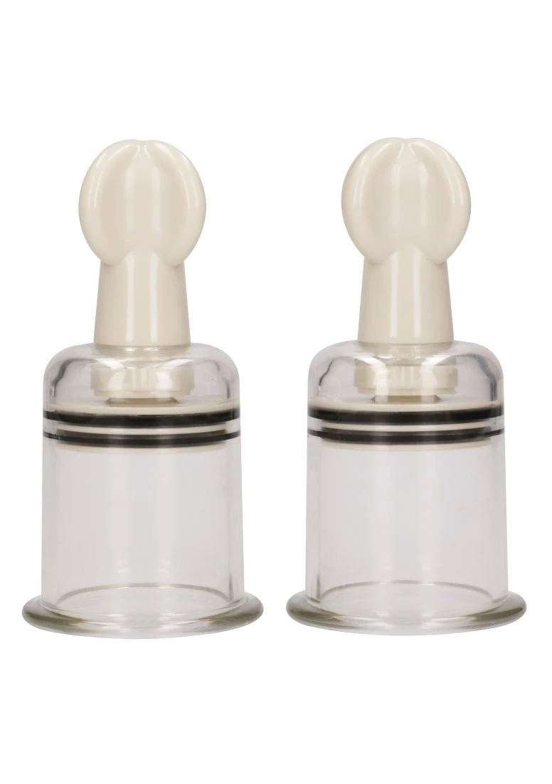 Combine the pleasure and arousal these nipple enhancers give whilst massage cupping your breasts! Be amazed at how amazingly simple and effective these suction cups work! Simply place the suction cups over the desired area and twist the handle manually to attach the cups. The OUCH! SUCTION CUP NIPPLE ENHANCERS are made of solid high-grade plastic, are executed in a white/transparent colour and come as a pair in a choice of sizes: S, M and L!