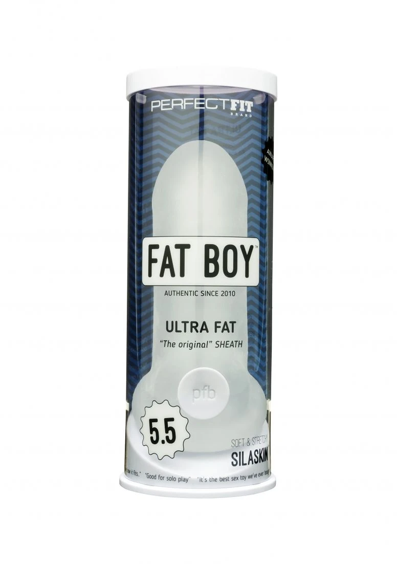 We are thrilled to introduce the new Fat Boyâ„¢ Ultra Fat Sheath–formerly known as our super popular FatBoyâ„¢and Fat BoySport™–but back in sharp all new vertical storage packaging. Adds an impressive 1″ girthto yourpenis!Made of super soft and stretchy SilaSkinâ„¢, it is designed and proven to give both partners intense, eye-rolling pleasure.The Fat Boyâ„¢ is extremely comfortable, surprisingly easy to get on and off and stays in place thanks to itsclosed tip and a thick loop that wraps around the base of the scrotum, which gives a pleasurable tug to aman’s balls during penetration or stroking.Available in 5.5″ and 7″ length sizes. Adds 1″ girth.