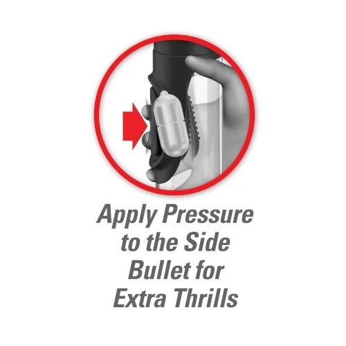 The vibrating micro bullet features a push-value switch to turn the vibrator on and can be removed for easy cleanup and battery replacement. The head teazer vibrator also features a push-value and will activate the vibrations in the pleasure socket at the top of the cylinder. The EZ-Grip pump handle allows you to control the pump with only one hand, freeing up your other hand for any extra stimulation you can imagine. Once you’ve reached your desired size, simply press the quick-release valve to relieve pressure, remove your cock, and slide on the included super-stretchy cock ring. Now you’re ready for action!
