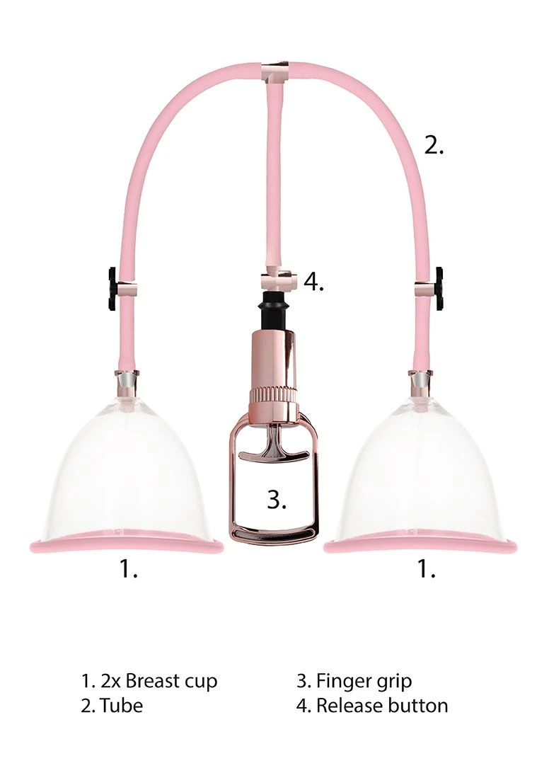 Pump to plump and ensure your breasts are looking their best with this the Pumped Breast Pump Set by Shots. This incredibly high quality breast pump helps in firming and increasing the size of your breasts. Using quick and efficient vacuum suction, your breasts will feel both fuller and more sensitive, making this the perfect accesso- ry for pre-bedroom preparation. The cup is designed with a smooth, silicone seal, so is incredibly comfortable whilst preventing air or moisture from entering. Very easy to use, simply attach the hose to the pump cup and place the cup over your breast. From then pump until the desired effect is achieved. Works for all different breast siz- es. Compatible with all types of lubricant. Use it no longer then 20 -30 minutes for both breasts and only pump to a point you are comfort- able with. This kit contains 2 breast cups, 1 hose and 1 hand pump.