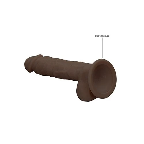 This model with balls stands 17.8cm (7″) tall including the suction cup, has an insertable length of 13.6cm (5.36″) and has a girth of 3.6cm (1.42″). Experience the premium-quality feel of silicone skin on the outside, combined with the revolutionary, dual density filling on the inside. A higher flexibility factor and better density give this dildo a super realistic look and feel, allowing you to bend, shape and mould to your desire. When heated (max 30 secs in Microwave/ 2 mins boiling water), the Thermo Reactive characteristics mean the toy becomes softer and more pliable. On the contrary, when the toy is cooled in the refrigerator it becomes harder, giving plenty of fun options for use. This REALROCK ULTRA model has been designed with realistic balls for an enhanced lifelike experience. All REALROCK ULTRA DILDOS come with a sturdy suction cup so you can stick it to practically any smooth surface. Deliverable in three exciting colours : Flesh, Brown and Black