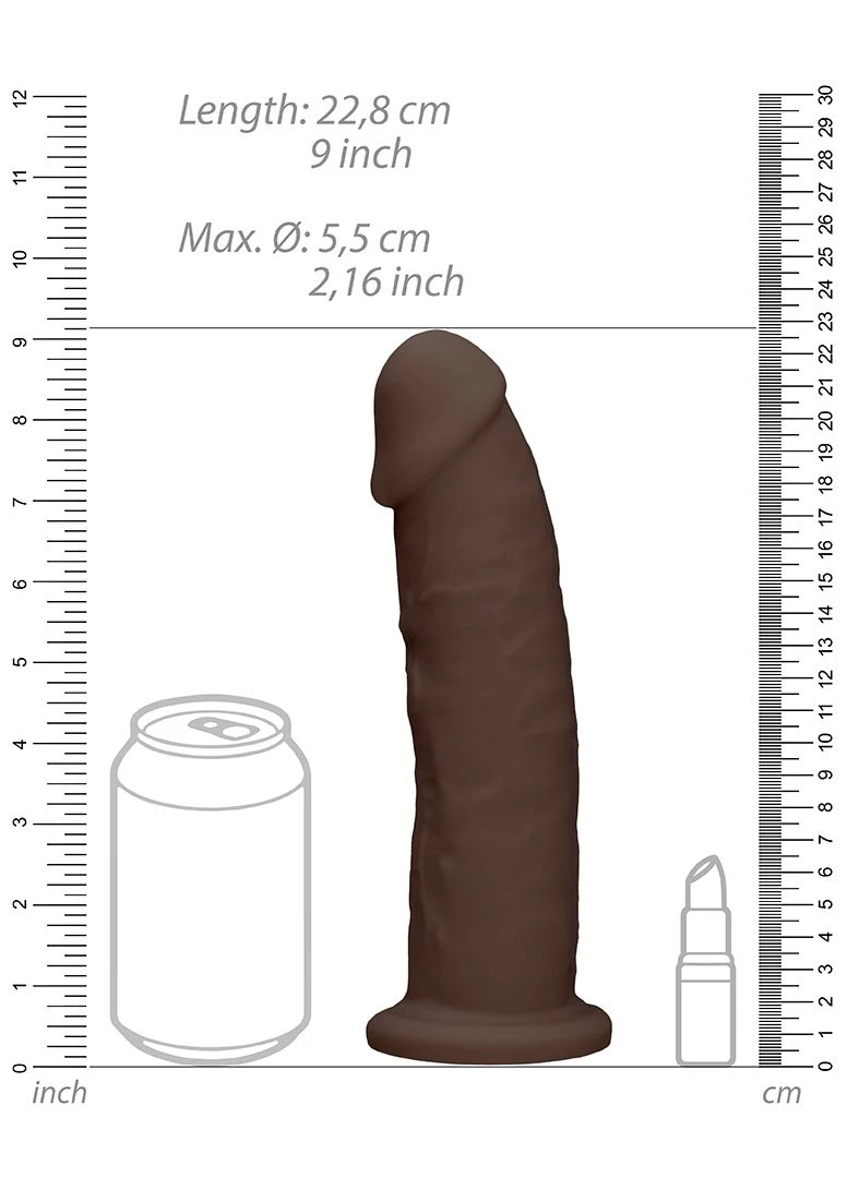 Experience the premium-quality feel of silicone skin on the outside, combined with the revolutionary, dual density filling on the inside. A higher flexibility factor and better density give this dildo a super realistic look and feel, allowing you to bend, shape and mould to your desire. When heated (max 30 secs in Microwave/ 2 mins boiling water), the Thermo Reactive characteristics mean the toy becomes softer and more pliable. On the contrary, when the toy is cooled in the refrigerator it becomes harder, giving plenty of fun options for use. All REALROCK ULTRA DILDOS come with a sturdy suction cup so you can stick it to practically any smooth surface. Deliverable in three exciting colours : Flesh, Brown and Black.