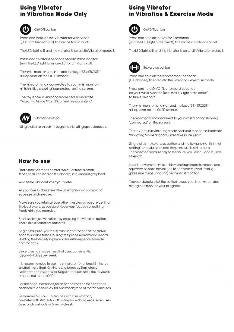 The SEXERCISE Kegel Egg combines the fun and thrills of a remote controlled vibrating egg with the functionality of a professional pelvic floor muscle trainer. This Kegel Egg, made from smooth medical grade silicone, has a total insertable length of approximately 9cm(3.55″) and a maximum width of 3.7cm(1.46″). It is USB-rechargeable via the included cable and the ultra powerful motor is equipped with 10 different and exciting vibration modes. The included booklet explains everything you need to know about maximising your pelvic floor muscle training, how to monitor your progress through the wrist device and enjoy sexual pleasure all at the same time.