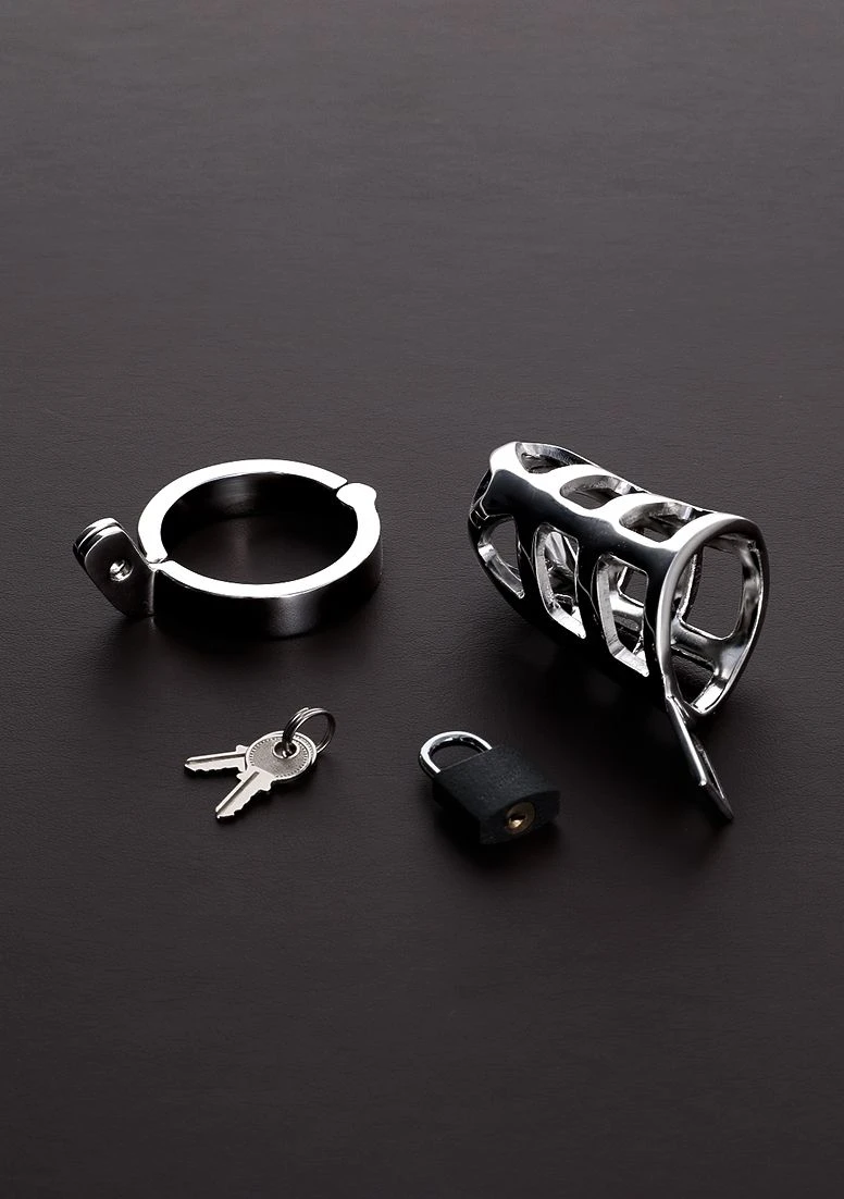 How would you like to keep your boy toy locked in hard and tight, literally? This Stainless Steel chastity cage will make him understand that he belongs to just you. To use you simply place the through the cage. You wrap the steel ring and place the closure through the chastity cage. Then lock him in and he’s under your control. The set is made of high quality steel and are smoothened to feel comfortable on the penis. The cage is made of durable steel for a shiny, elegant look.