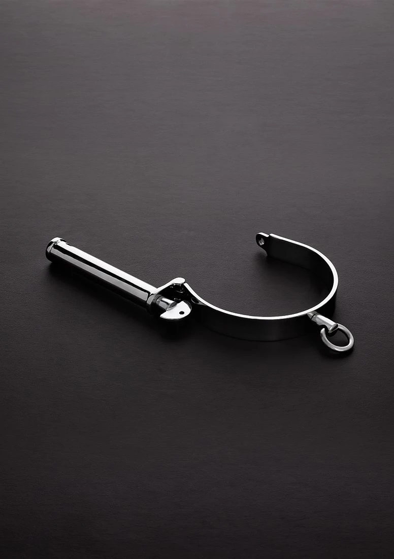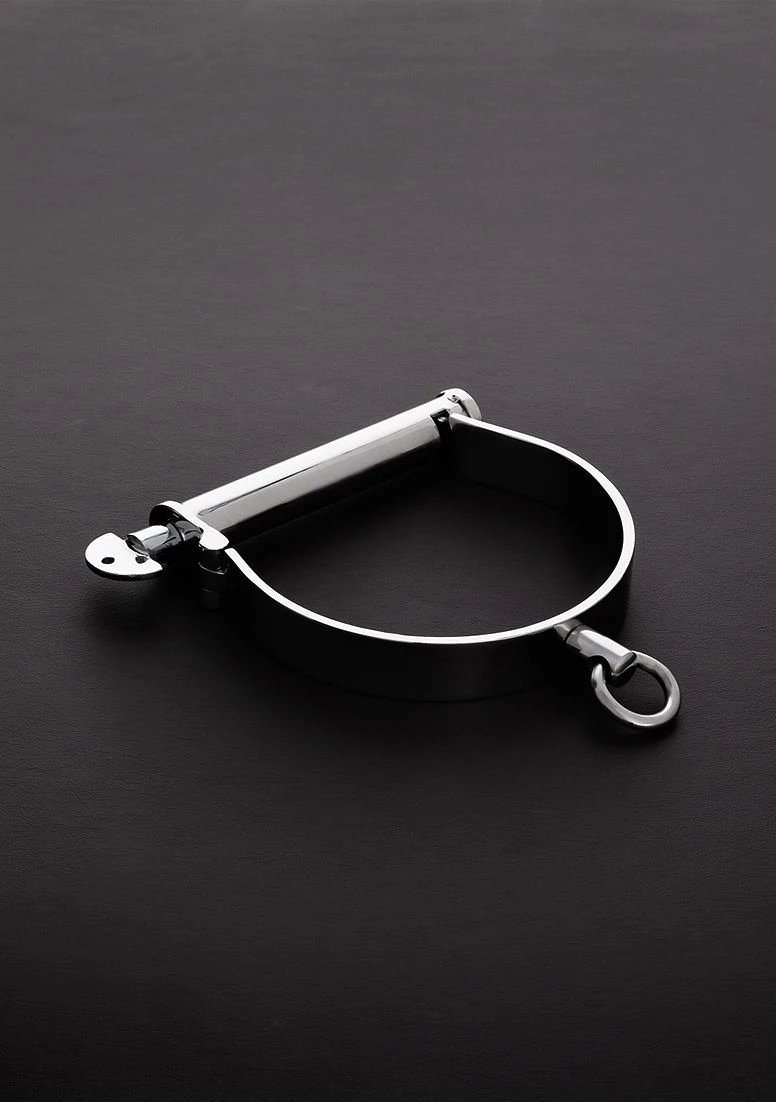 This uniquely Collar is made of stainless steel and can easily be placed around the neck of your submissive. The lock its at the back and at the front there is a O-ring for attachments like a rope.