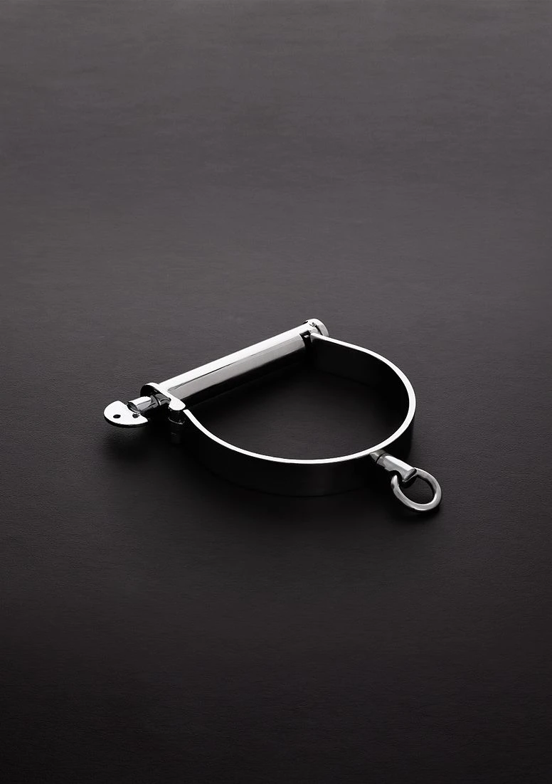 This uniquely Collar is made of stainless steel and can easily be placed around the neck of your submissive. The lock its at the back and at the front there is a O-ring for attachments like a rope.