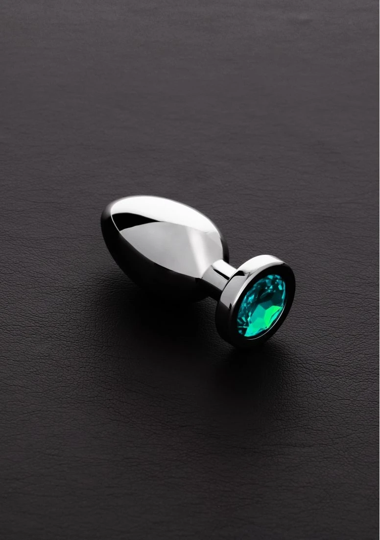 Shots – Steel Jeweled Butt Plug AQUA BLUE LIGHT – Small