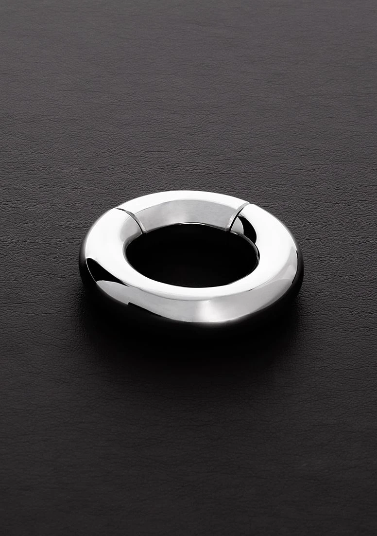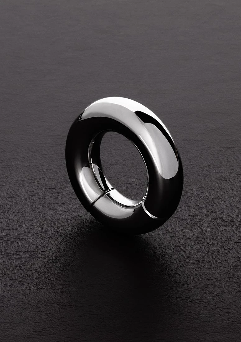 The legendary sex pleasure toys now in a magnetic version. Simple concept and execution. Powerful magnets hold in place, a removable wedge. Detach the wedge, slip your scrotum through the gap and re-attach the wedge. The strong magnets hold the ring firmly together – done! No tools or allen keys needed. Of course it comes off just as quickly – useful when you want to remove your ball weights in a hurry! The ring is made of highly polished stainless steel. Stainless steel is virtually indestructible and is easy to clean – a product for eternity.