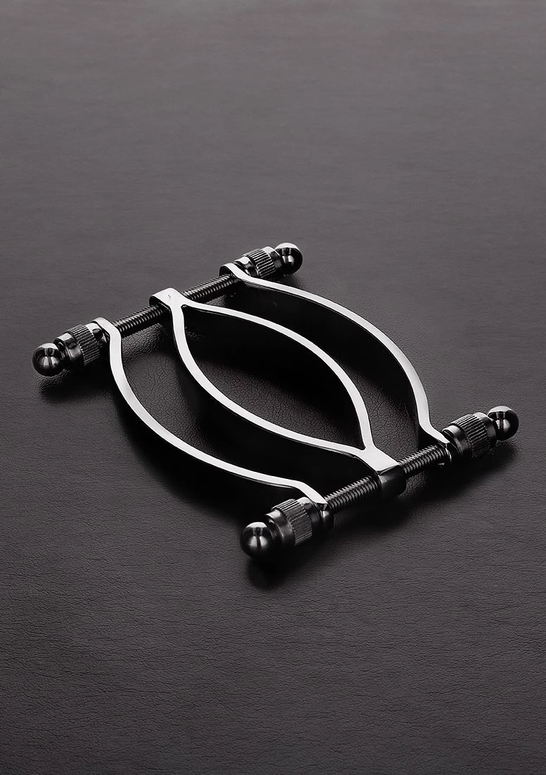 This pussy clamp allows you to take full control of your partner. Spread your partners libia wide open, gean access to their clitoris and vagina and leave them in pinching pain and pleasure.