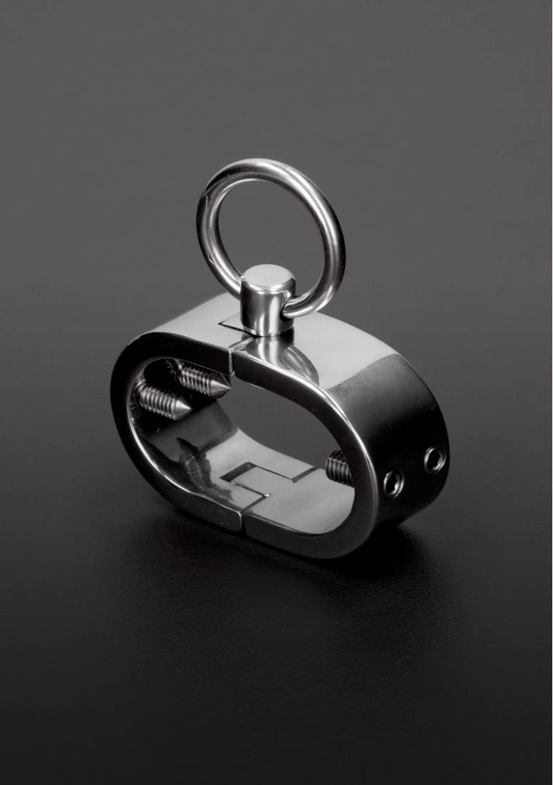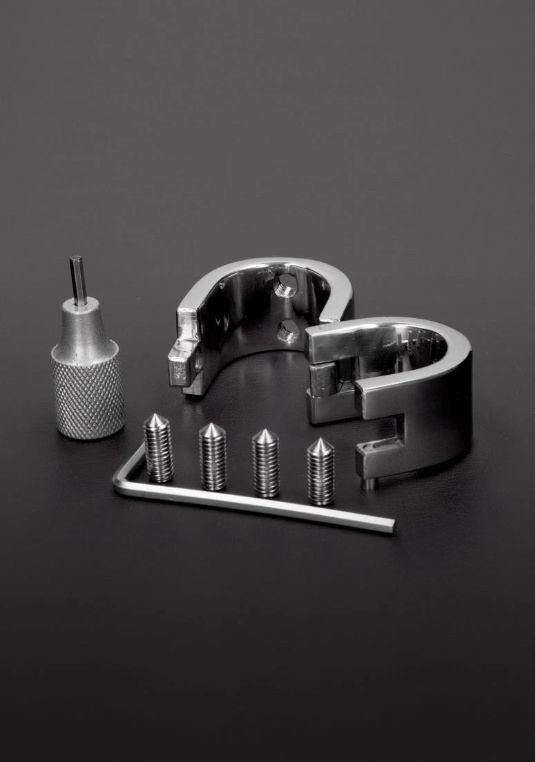 This Oval shaped weight is made from Stainless Steel -Pain is Pleasure and the Kelis Teeth Spiked Ball Weight will prove it to you again and again as you expand your erotic games and let your imagination run wild with no limits Ergonomic oval shape fits perfectly between the base of your penis and your testicles. Wide hinge opening for comfortable installation and removal. Built in O-Ring at the front for attaching leads and restraints. Four adjustable spikes to dial in the pain with expert precision.