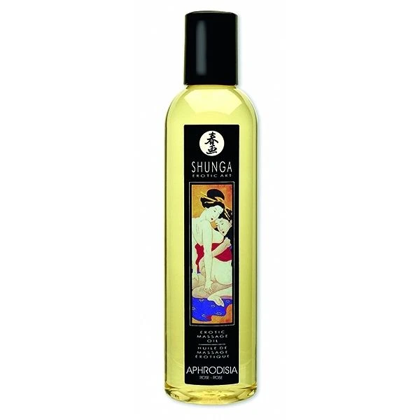 Shunga Massage Oil Aphrodisia is made up of 100% natural cold-pressed oils and Vitamin E, which acts as an antioxidant. Each oil has been carefully selected for its stimulating and energizing qualities. With a non greasy residue, the Shunga Massage Oil glides easily over the skin providing a smooth, desirable feeling. This product contains no mineral or animal oil so you can relax and enjoy the pleasures of giving or receiving a sensual or erotic massage knowing the ingredients are all natural.Â