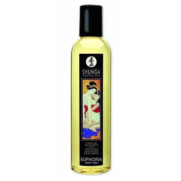 Shunga Massage Oil Euphoria is made up of 100% natural cold-pressed oils and Vitamin E, which acts as an antioxidant. Each oil has been carefully selected for its stimulating and energizing qualities. With a non greasy residue, the Shunga Massage Oil glides easily over the skin providing a smooth, desirable feeling. This product contains no mineral or animal oil so you can relax and enjoy the pleasures of giving or receiving a sensual or erotic massage knowing the ingredients are all natural.Â