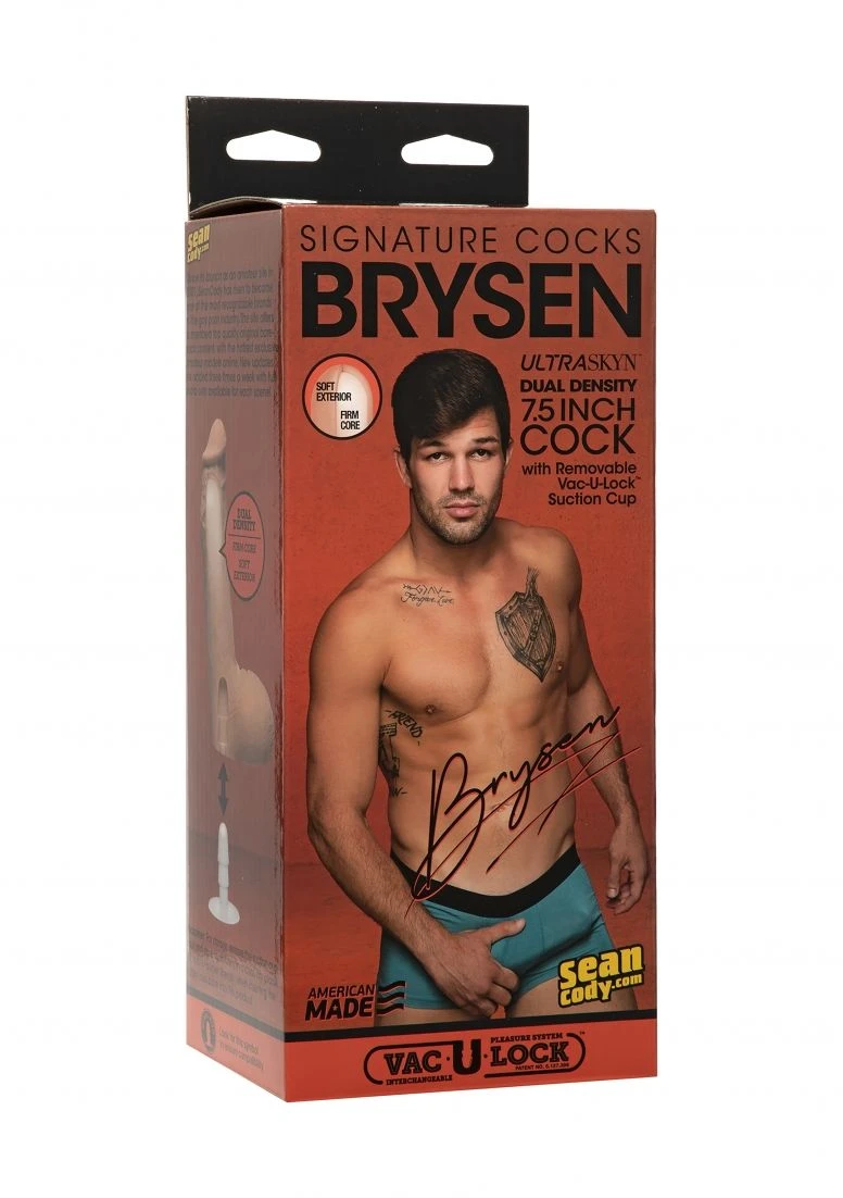 Are you ready to get pounded? SeanCody star, underwear model, and MMA fighter Brysen’s thick 7.5 inch cock is replicated in perfect detail to bring your porn star fantasy to life. Handcrafted in lifelike ULTRASKYN, Brysen’s Signature Cocks dual density dildo looks and feels just like the real thing.