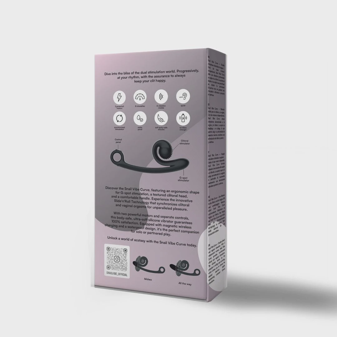 The Snail Vibe Curve comes with a magnetic USB charging cable, user manual, and a luxury storage case. Clean the vibrator after use with lukewarm water and a toy cleaner, then pat dry with a lint-free cloth. Discover it for yourself!