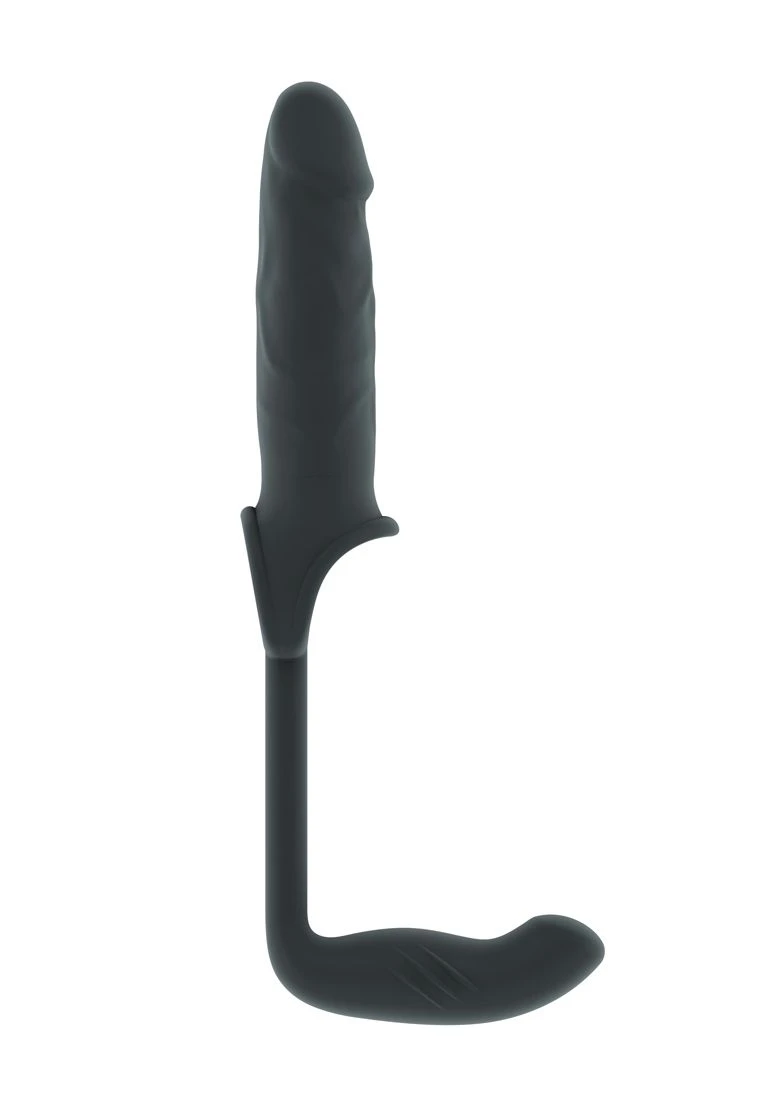 Are you looking for just a couple of inches more in the most comfortable way possible but are you also a fan of backdoor pleasure? Then this is exactly what you need! The thick sleeve is designed to add 2,5 cm to your penis and add 0,4 cm to your girth. The thick sleeve is shaped to give optimal stimulation and because of the ball strap it will stay in place. Even your best moves won’t make it come off! The Sleeve also features an attached butt plug. Because of its texture and form it’s easy to insert. It is recommended to use a little lubrication (by PharmQuests). The slightly curved tip will gently massage your p-spot and its detailed base will give you some great stimulation. The sleeve is created from the best quality soft TPE and available in the colours black, grey and transparent.