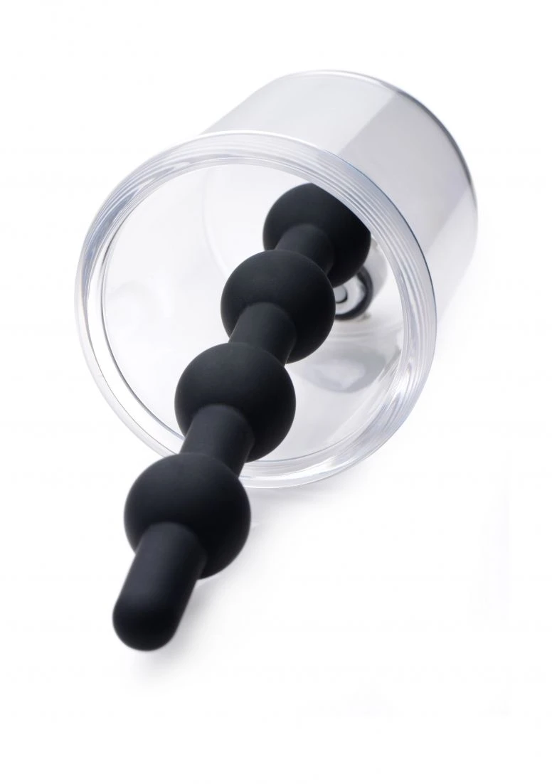 Make your A-hole swell as powerful suction increases circulation. Anal engorgement combines with penetration in this unique pumping accessory. Just stuff your booty hole with the flexible silicone beads, attach your compatible hose and pump, and begin squeezing to build pressure in the cylinder. Your anus will be sucked in, puckering out like a blooming rosebud! The 4 smooth bulbs of the anal beads will add additional stimulation as you increase the size and sensitivity of your hole, but they can also be removed from the cylinder. Both materials are non-porous, durable, and sanitize thoroughly with mild soap or toy cleaner. Avoid use with silicone lubricants.