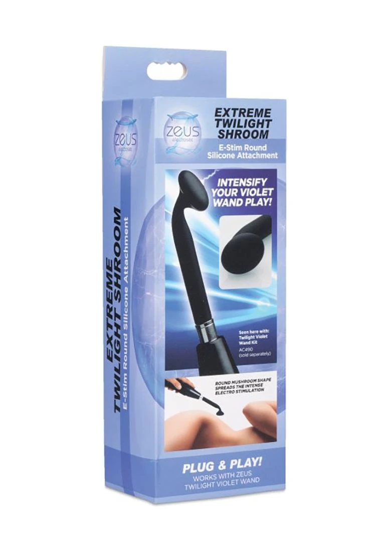 Intensify your Violet Wand play! If you have ever only used glass before in your Twilight wand, prepare to experience the sensual intensity of silicone! The soft and flexible mushroom head shape plugs into your favorite violet wand, spreading intense electro stimulation to whatever body part you choose. This extreme accessory offers estim intensity without the worry that handling delicate glass can bring, making it perfect for travel or rough play. The premium silicone is an intense conductor, and cleans easily after use. Compatible with the Zeus Twilight Violet Wand.